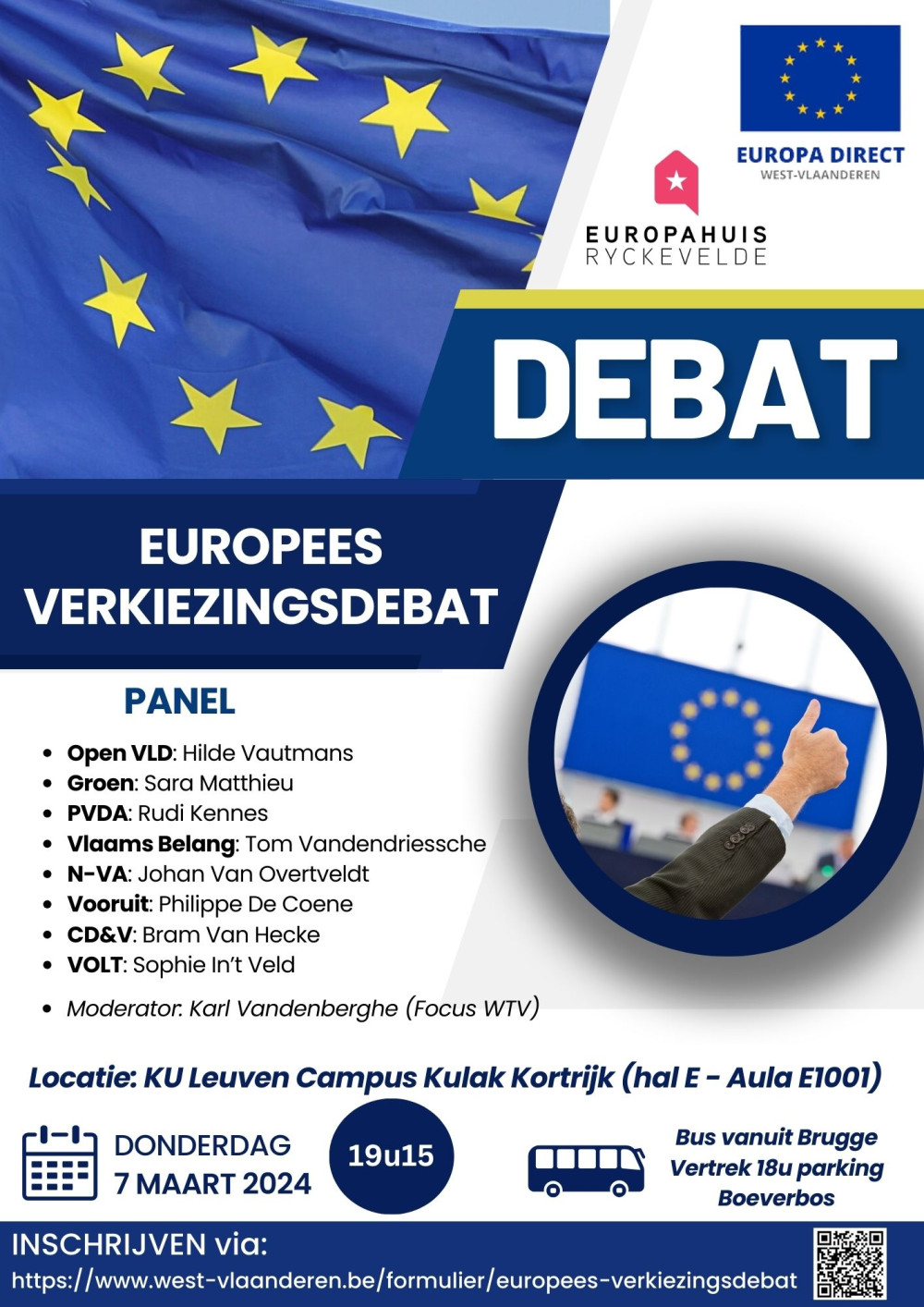 Debate in Kortrijk with multiple Dutch-speaking lead candidates for the European elections, including our Sophie in 't Veld