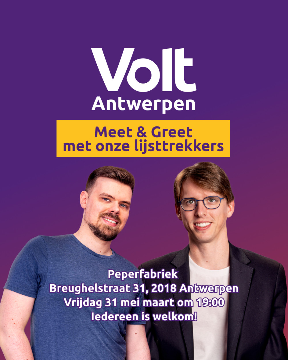 During this meet & greet we will get to know the lead candidates for the Federal Parlament, Jasper Coosemans, and the Flemish Parlament, Jeroen Van Loock. Jasper and Jeroen will explain their motivation to run for Volt and their proposals for Antwerpen.