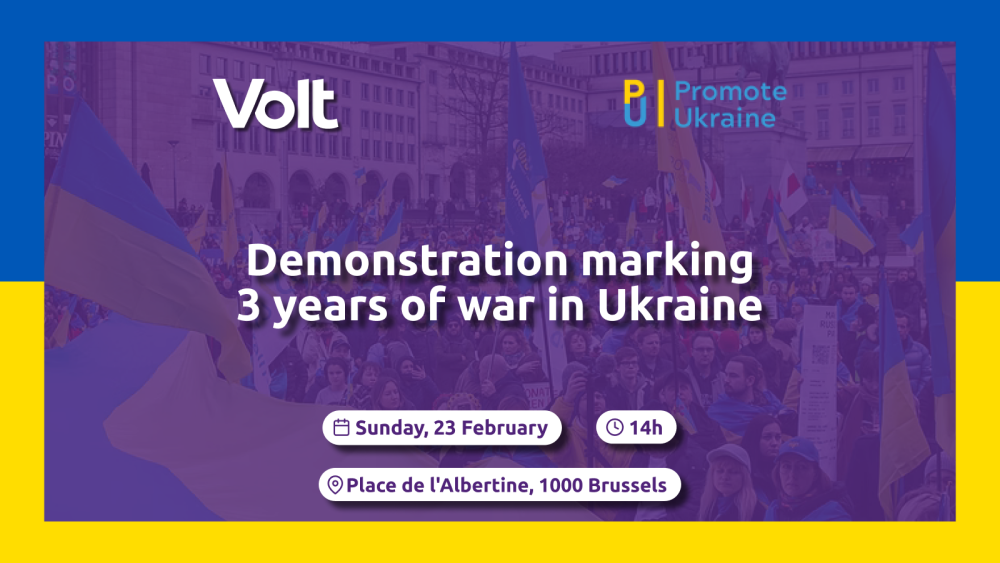 Volt Belgium is participating in a demonstration to mark three years of the full-scale war in Ukraine.